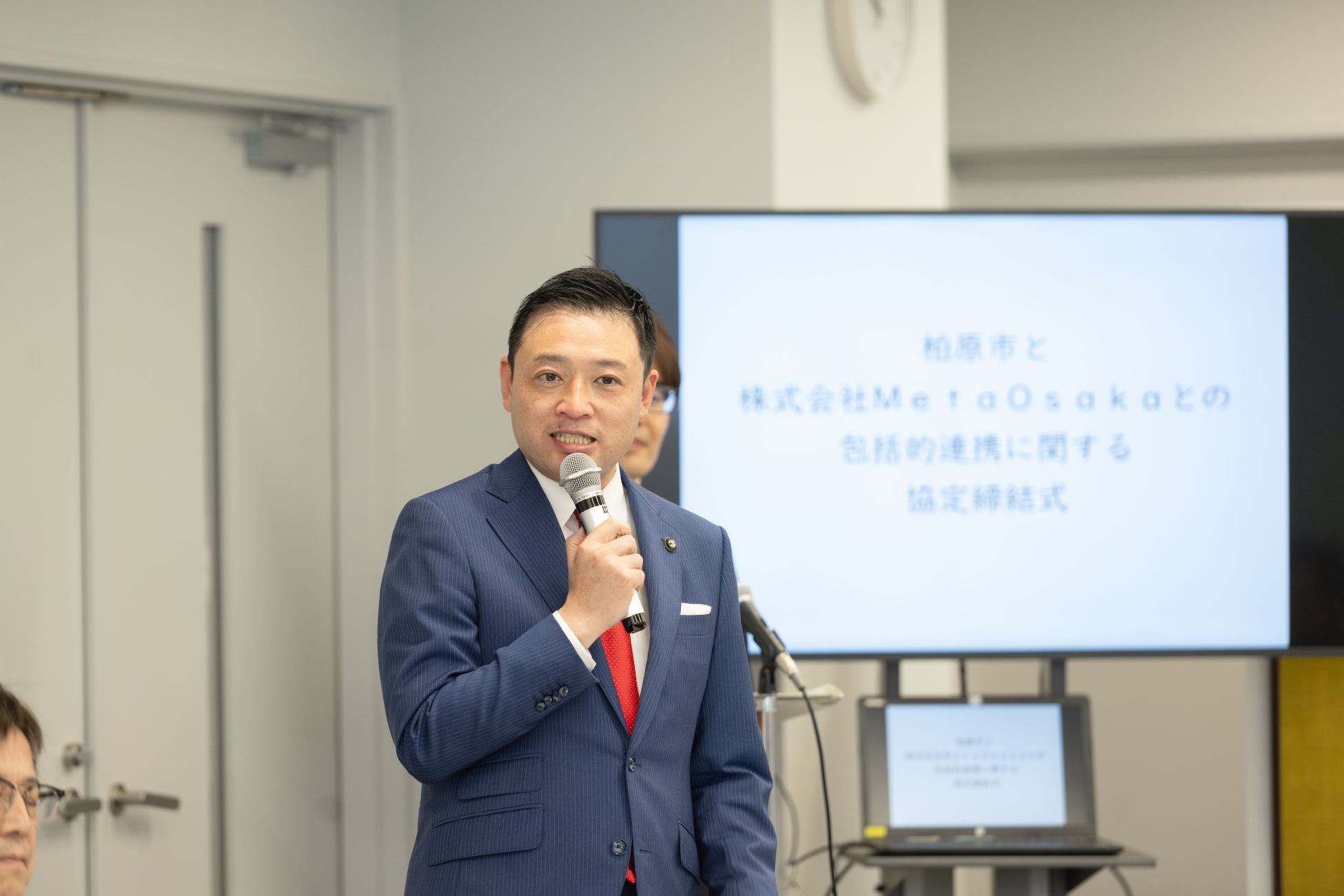この度、Meta Osaka様と包括連携協定を締結させていただきました。柏原市では、市及び民間企業のそれぞれが有する人的・物的資源を有効に活用して、地域の活性化や市民サービスの向上等を図ることを目的として公民連携の取組を進めております。Meta Osaka様は、「大阪を世界一おもろい都市に」というミッションのもとメタバースを活用した事業などを展開されておられます。