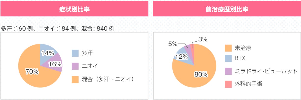医療法人ジュエリメディカルでは、多汗症やわきがの治療を3,000件以上行っており、そのうち、