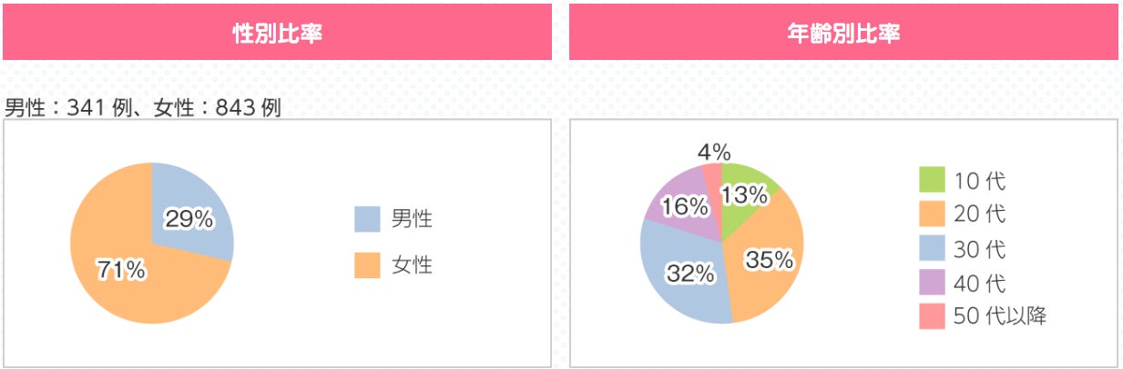 ミラドライの治療を受ける患者さまのうち、7割が女性で、年齢層は20~30代が半数以上を占めています。