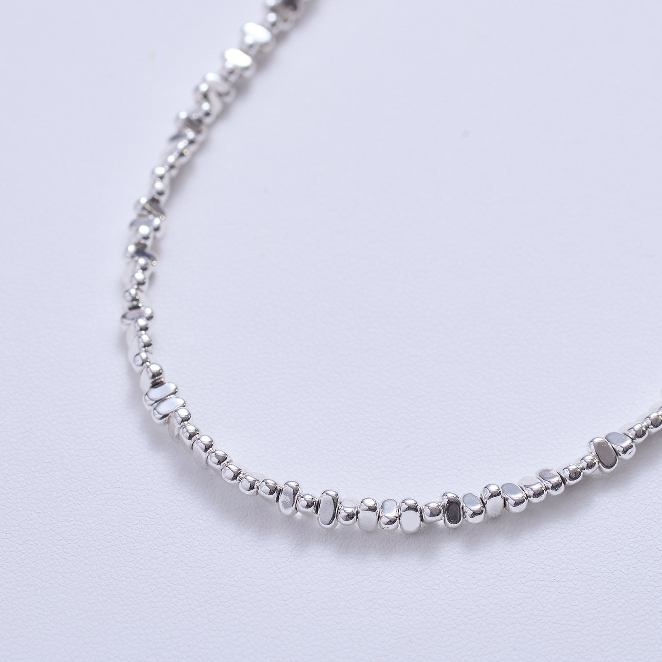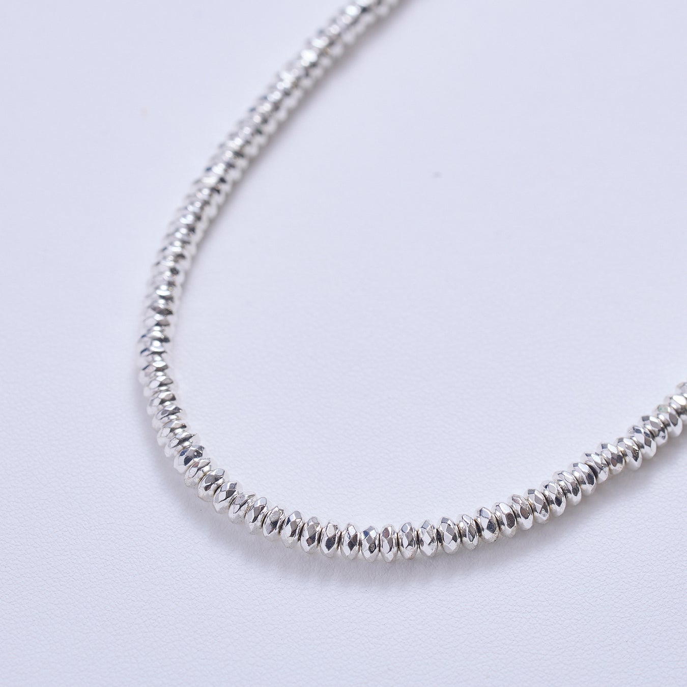 メインとなる天然石〈ヘマタイト〉にコーティングを施したシリーズは、ヴィンテージな雰囲気漂うチョーカー風のアイテムや、華奢なシェイプで見る角度によってキラキラ輝くアイテムなど、様々な表情を見せてくれる大人でモードなライン。