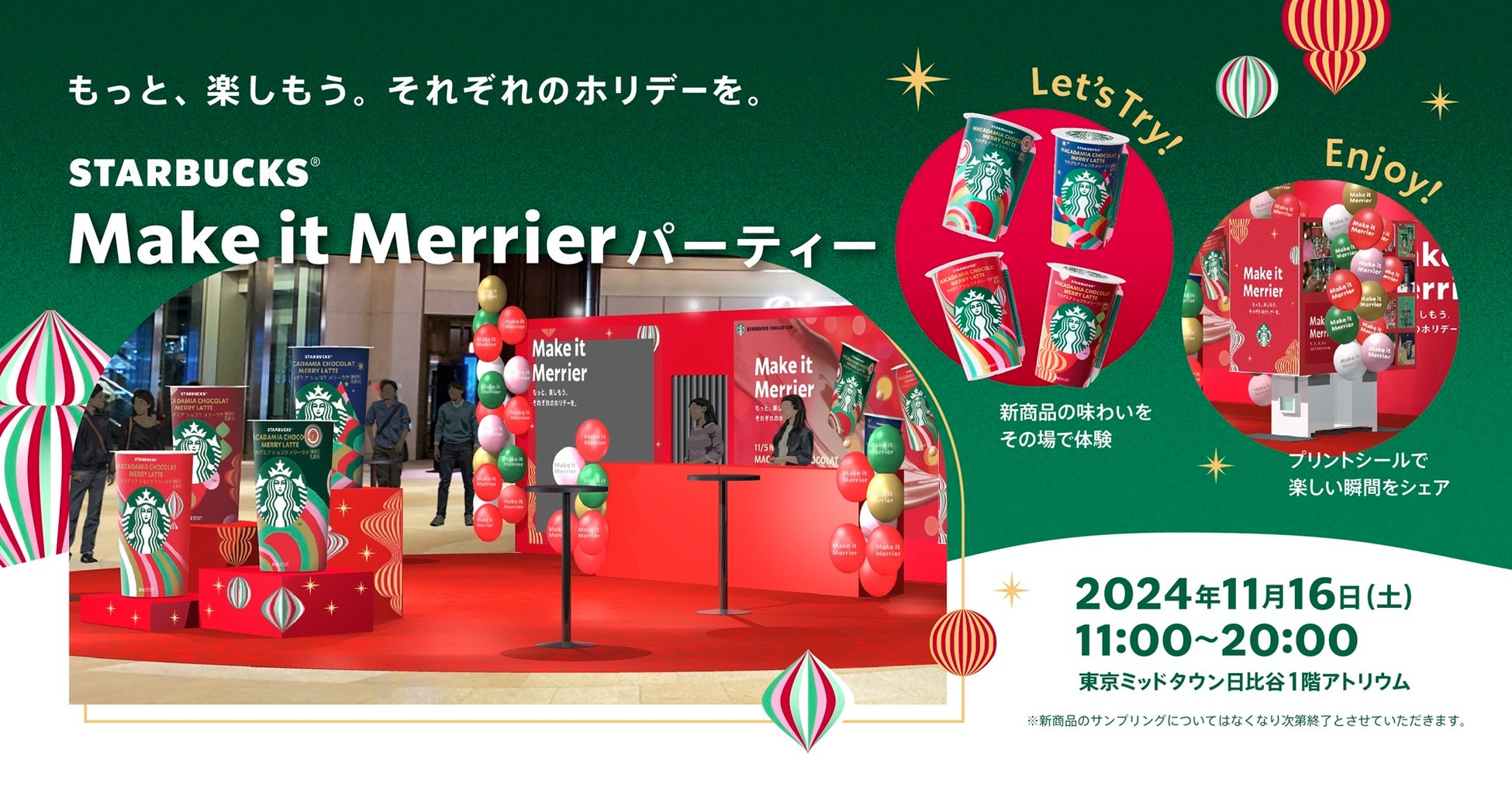 「スターバックス® マカダミア ショコラ メリーラテ」発売を記念して、東京ミッドタウン日比谷 アトリウムにて、ポップアップイベント「もっと、楽しもう。それぞれのホリデーを。STARBUCKS Make it Merrier パーティー」を11月16日(土)に開催します。