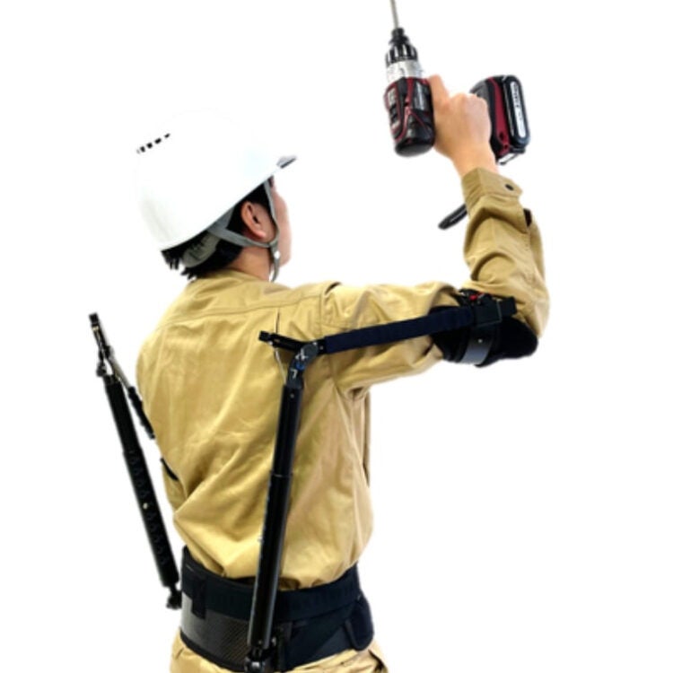 モータ駆動で荷物を持つ腕を力強くサポート。軽量かつシンプルな操作性に加え、装着しやすさにも配慮した電動アシストスーツ。