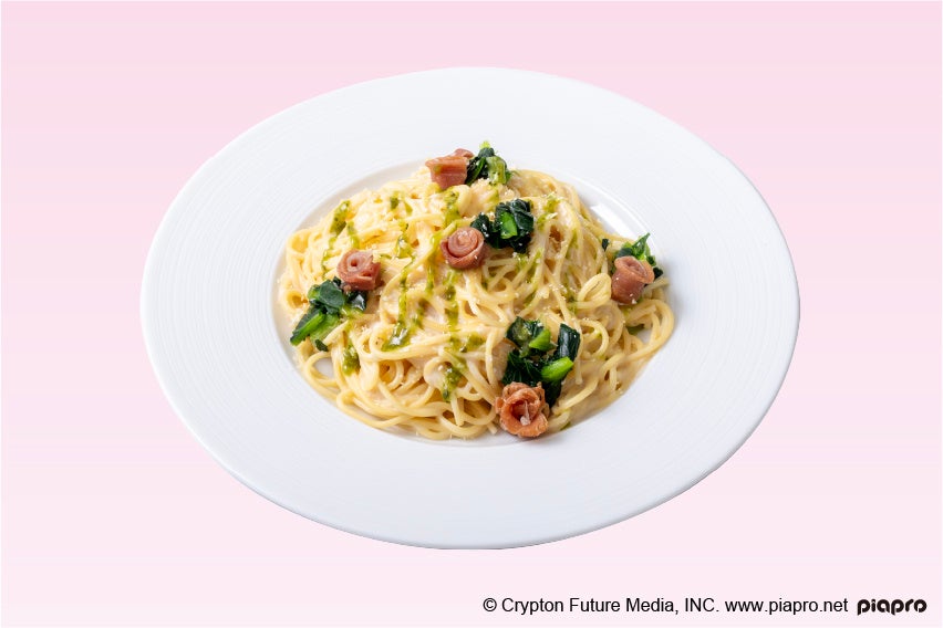 メインビジュアルの薔薇をモチーフにしたパスタや、巡音ルカ15周年テーマ曲「ヴィーナス」をイメージしたパフェ、キャラクタードリンクなど、フード3種、デザート3種、ドリンク7種をご用意いたしました。