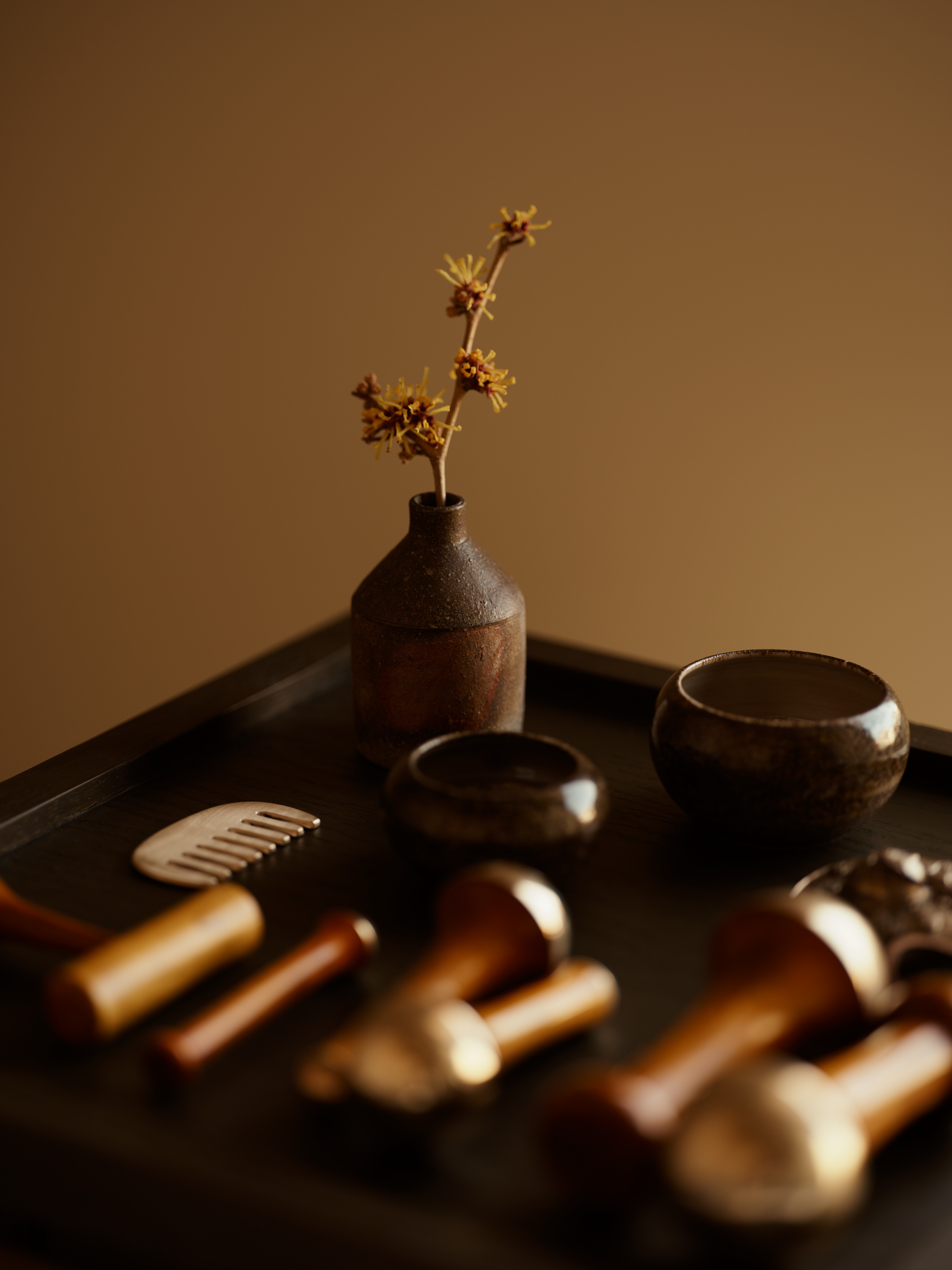 温められた大理石のトリートメントテーブルに横たわり、身体をしっかりと温めたあと、オリーブオイルとユーカリをベースにした、ミネラル豊富なブラックソープ で全身を丁寧に洗い上げ、角質をやわらかく整えます。続いて、専用のケッサミットで古い角質をやさしく取り除き、肌のキメをなめらかに。クールダウンを挟みながら温冷のコントラストを楽しむことで、血行や自律神経のバランスが整い、緊張や疲労のリリースを促します。最後は、酒粕パックで全身を包み込み、アミノ酸や酵母の恵みが、潤いを与えながら肌に自然な透明感をもたらします。