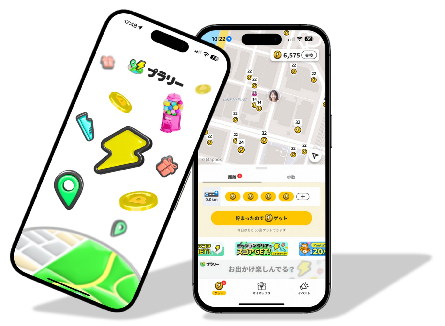 ※おでかけエンタメアプリプラリーは日常の移動やチェックイン、デジタルスタンプラリーなどのロケーションイベントを達成することでポイントがたまり、AmazonギフトカードやPontaポイント等の多様なポイントに交換したり、アプリと連動したカプセルトイ「プラポン」でリアルインセンティブを獲得することができるおでかけエンタメアプリです。