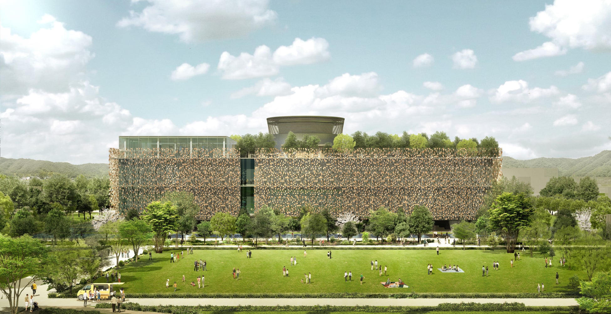 格子状のデザインは視覚的に軽やかで、空調機や非常用発電機の給気に必要な空気や風を通した上で、騒音抑制や日射抑制、視線制御などの多岐に渡る機能を有し、地域環境へ貢献する大規模データセンターに適した外装デザインとしています。