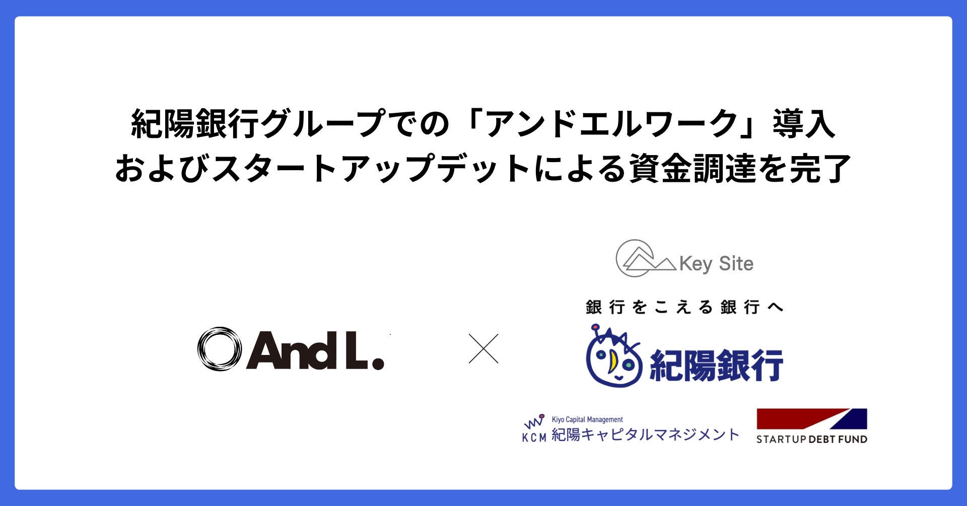 アンドエル株式会社は、紀陽キャピタルマネジメント株式会社及びSDFキャピタル株式会社の運用する紀陽スタートアップデットファンド1号から資金調達を完了いたしました。