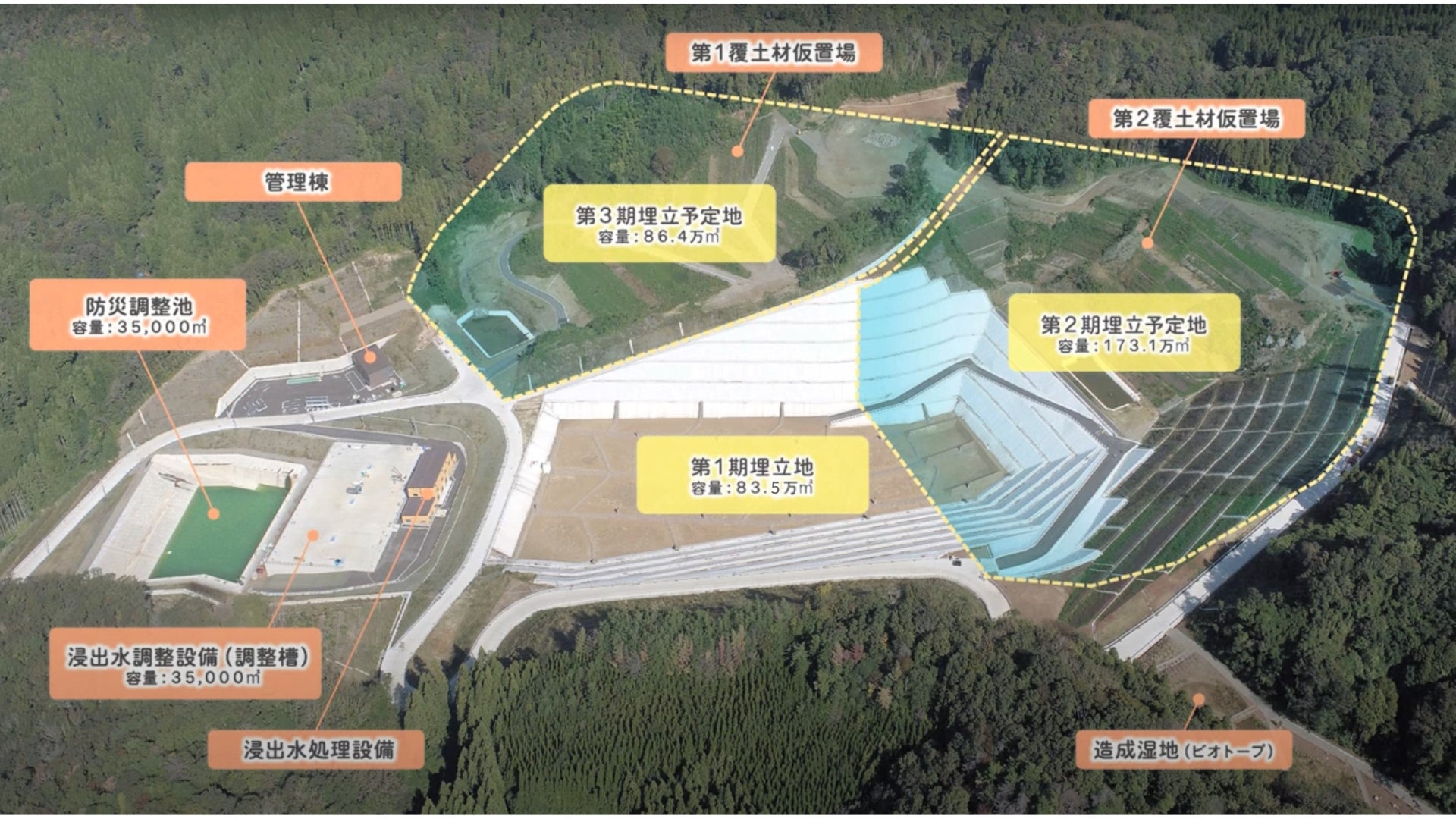 産業廃棄物を安全に処理するための施設で、特に有害物質を含まない廃棄物を対象としています。廃棄物が環境に与える影響を最小限に抑えるために、浸出水処理やガス処理設備が必要になります。