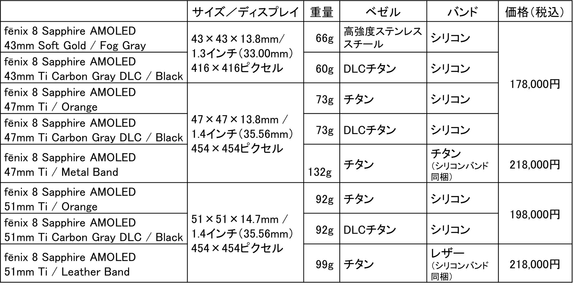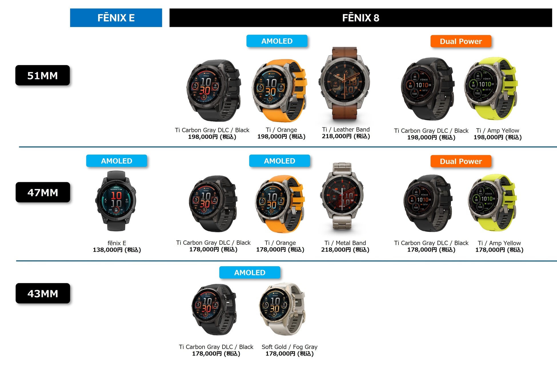 「fēnix 8 Sapphire AMOLED」シリーズ 3サイズ/8モデル