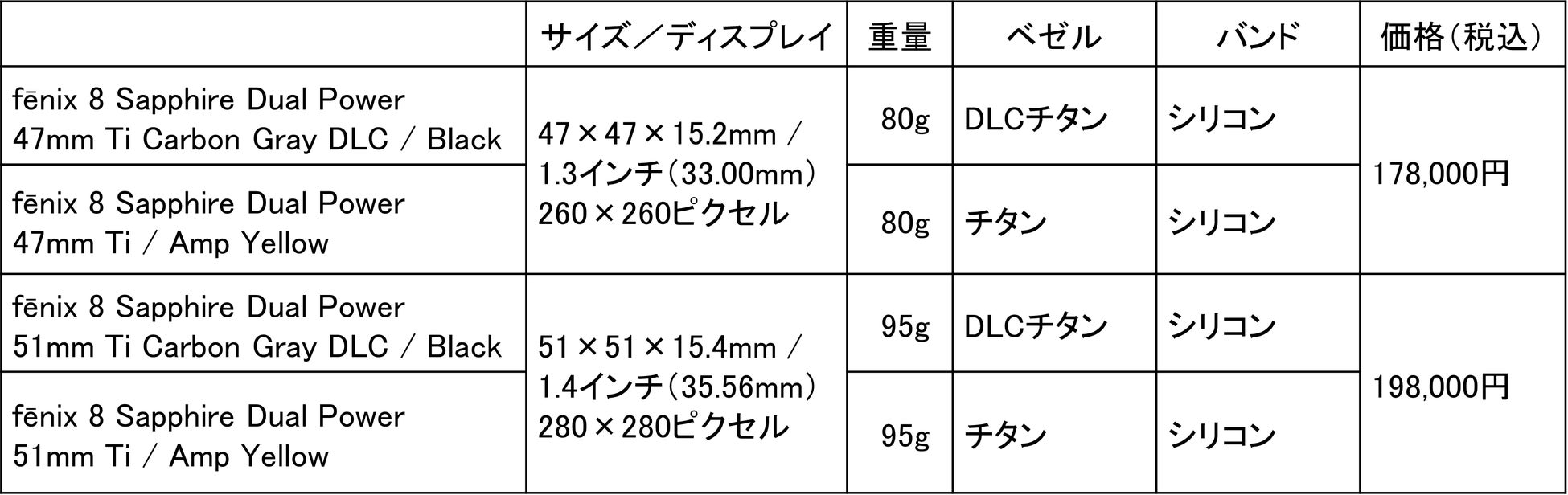 「fēnix 8 Sapphire Dual Power」シリーズ 2サイズ/4モデル