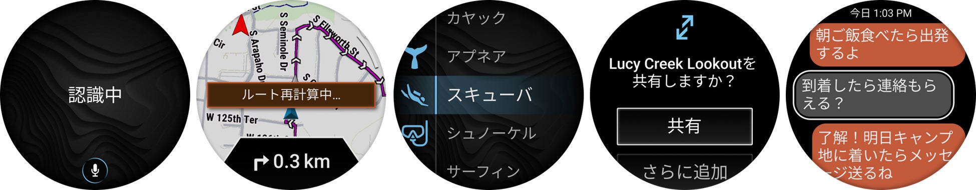 音声機能は、オフラインでも時計のコントロールが可能な「音声コマンド」、ペアリングしたスマートフォンの音性アシスタントにアクセスしてデバイス制御ができる「音声アシスタント」なども活用可能です。