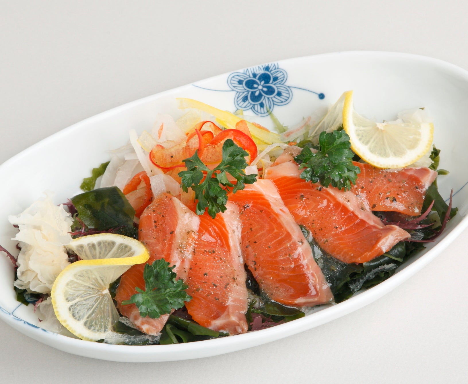 北海道二海サーモンと玉ネギの和風サラダ