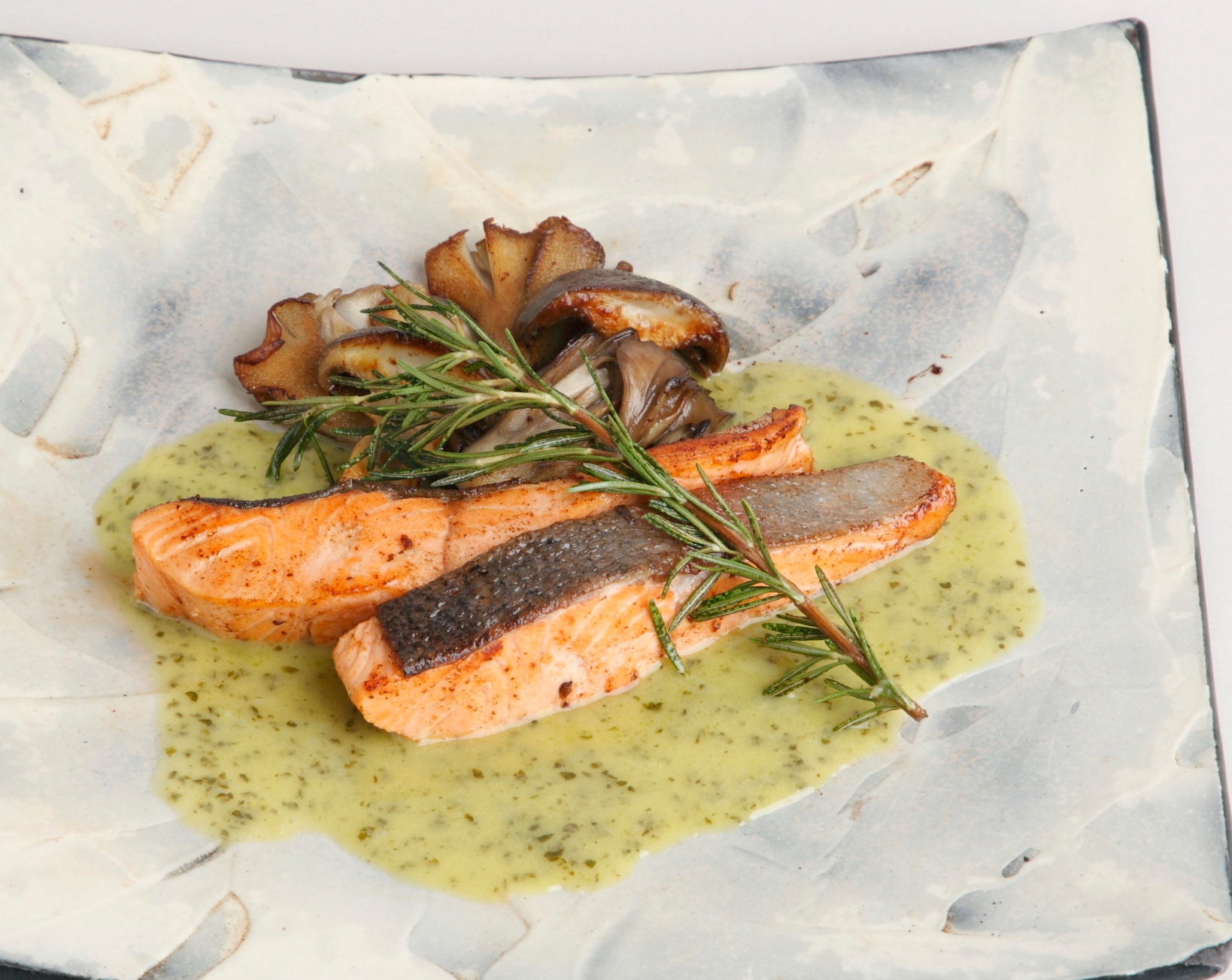 北海道二海サーモンと木の子の香草バター焼き