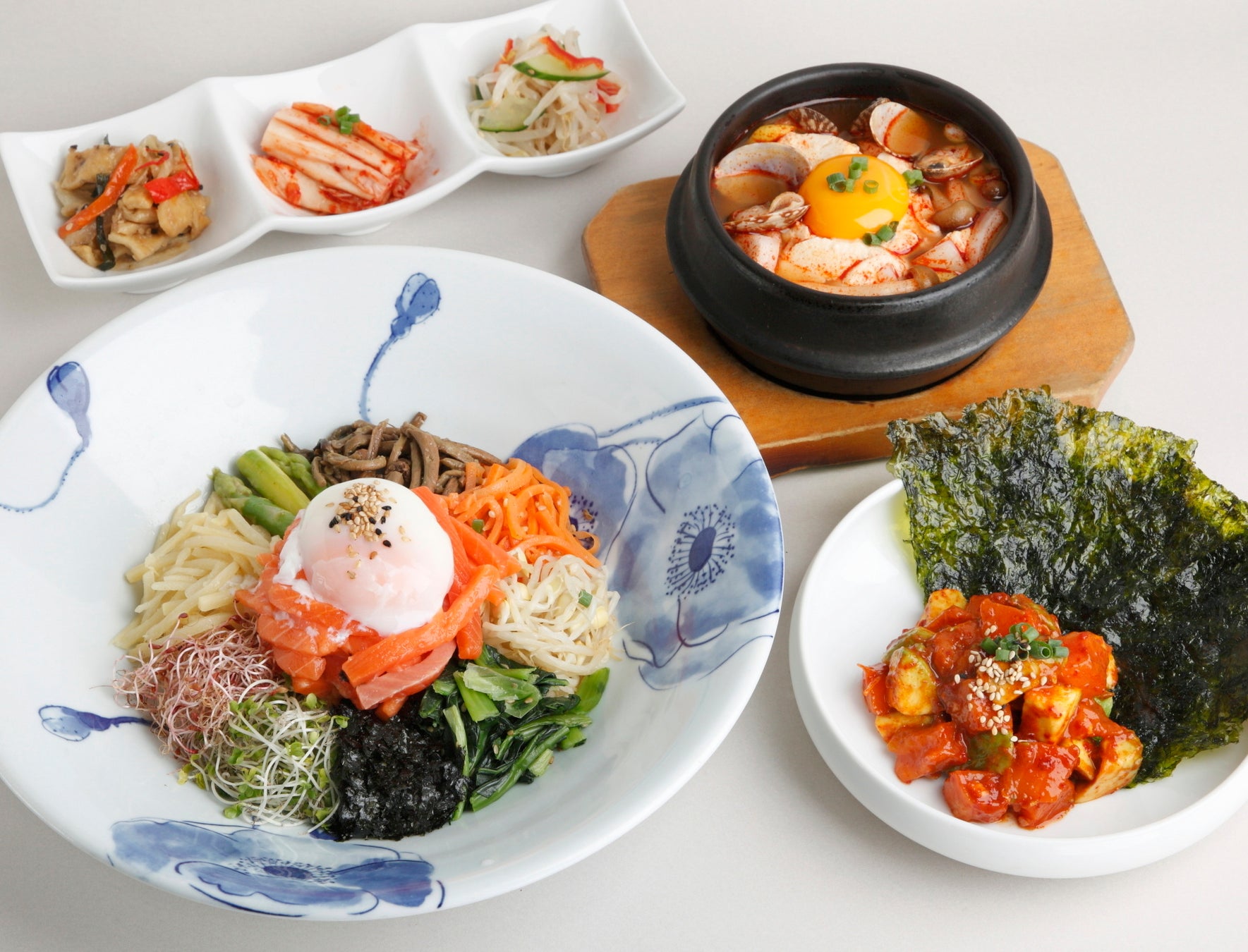 二つの海の名にちなんだ“北海道二海サーモン”を、人気のビビンパと香ばしい韓国海苔で巻いて食べる逸品料理と、2種類の味で楽しめるセットメニューに仕上げました。