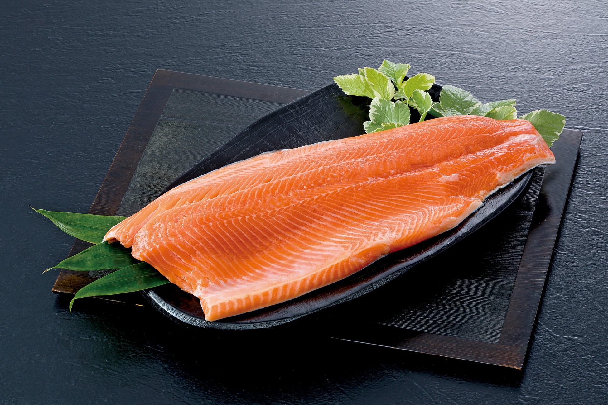 丁寧に育てられた脂のりのよい北海道二海サーモンを、シャキシャキ食感の玉ネギの上にのせ、レタスを添えました。サーモンで野菜を巻いて、さっぱりとした和風ドレッシングとともにお楽しみください。