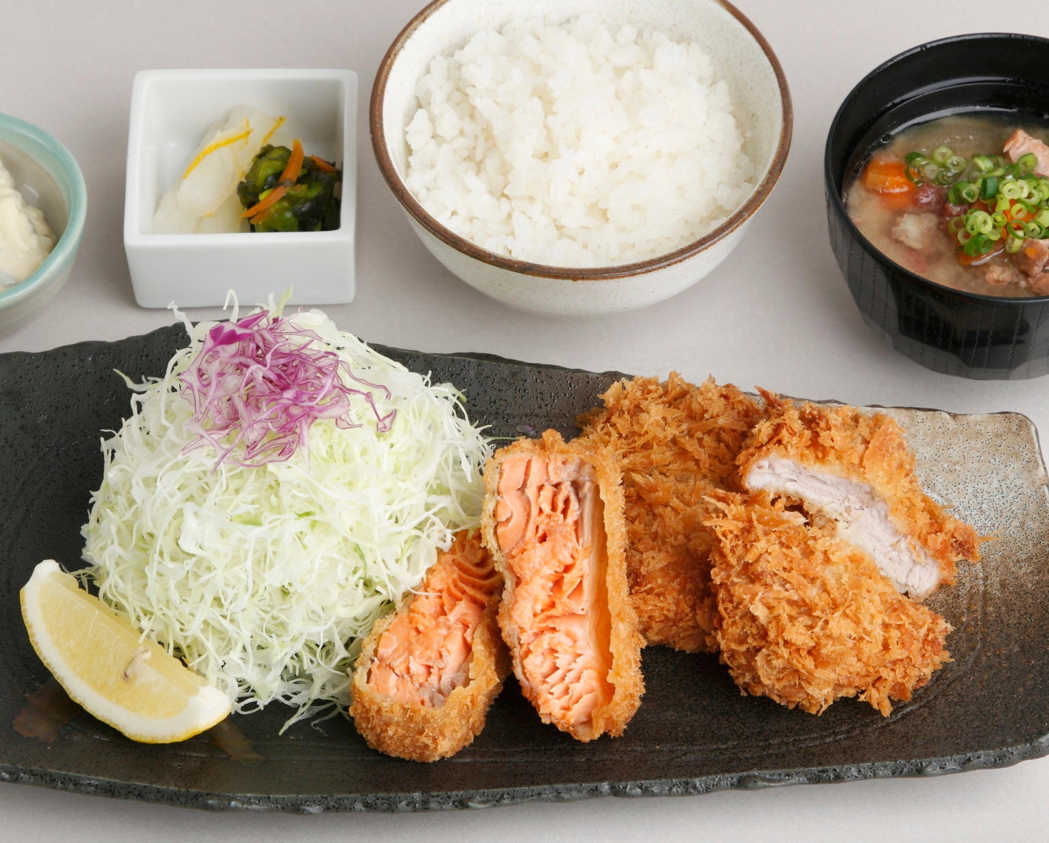 北海道二海サーモンと鹿児島県産南州豚ひれかつ