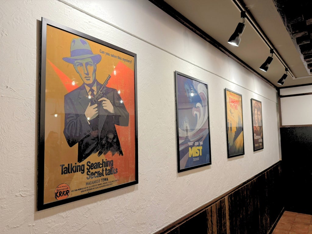 壁面に飾られた絵画には、マーダーミステリーファンなら思わずクスッと来てしまうような仕掛けも。将来的には軽飲食の提供も検討しており、公演後の食事会の場としても利用できるよう、準備を進めております。「公演を行うための箱」に留まらず、「訪れるだけで楽しい場所」を目指しています。
