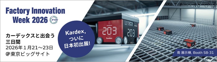 Kardex Japanは、2026年1月21日(水)から23日(金)まで東京ビッグサイトで開催される「Factory Innovation Week 2026」に出展します (南1ホールS8-31) 。会場では、AutoStoreを中心とした最新の倉庫自動化ソリューションを紹介し、日本の製造・物流業が直面する人手不足や保管効率向上といった課題に対する具体的な提案を行います。今回の出展は、KardexとAutoStoreが日本市場において、単なるシステム導入にとどまらず、顧客のビジネス成長を支援するパートナーとしての役割を果たすことを示す場となります。両社は、グローバルで培った技術力とノウハウを活かし、日本の産業に革新をもたらすことを目指しています。