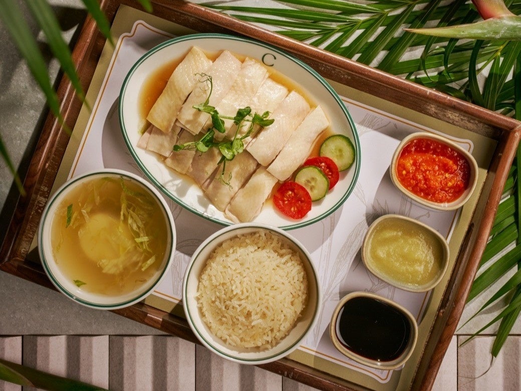 ブランドを象徴する名物料理「シンガポールチキンライス」を含む多種の料理(着席にてご提供)