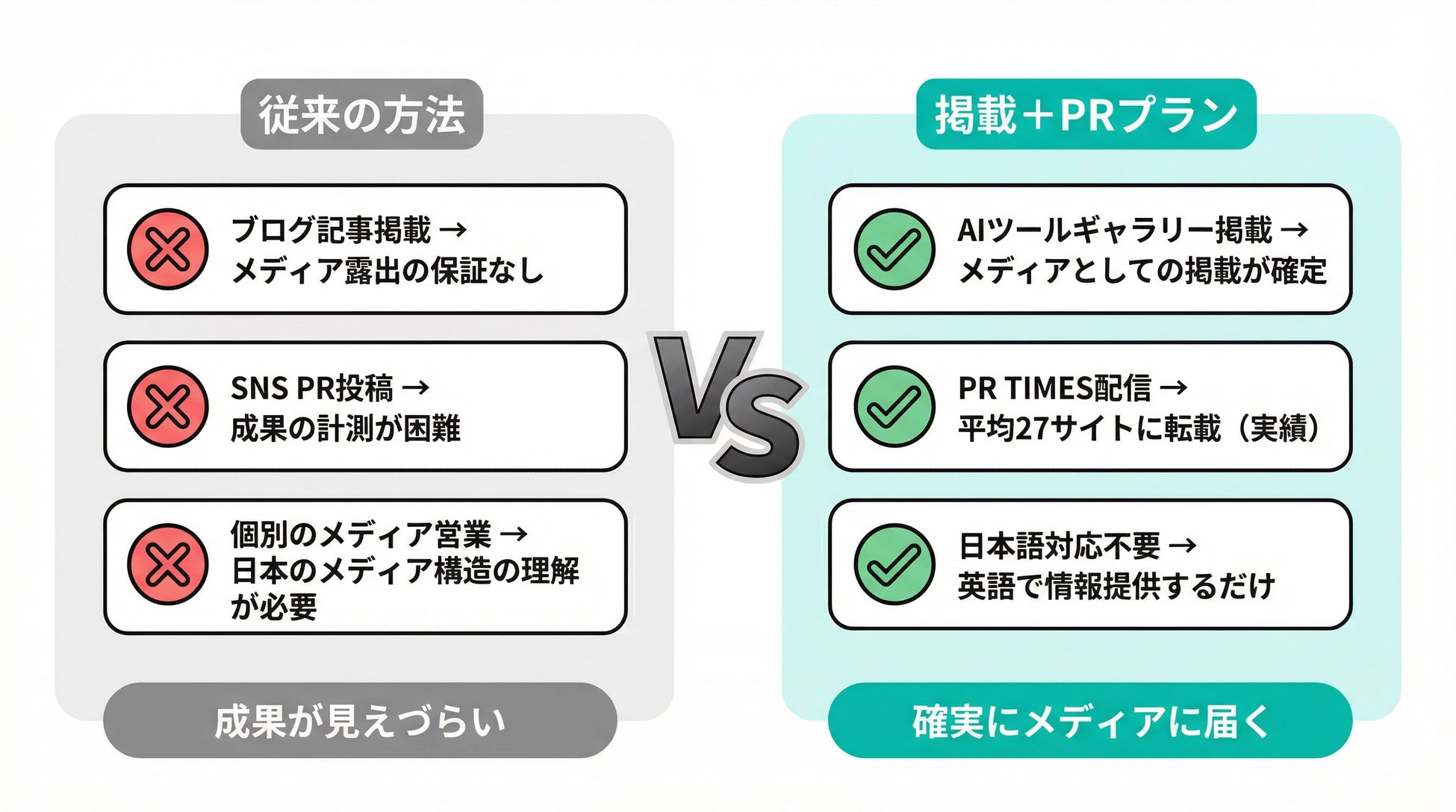 本プランは、AIツールギャラリーへの掲載とPR TIMES配信を組み合わせた、海外AI企業向けのPRサービスです。