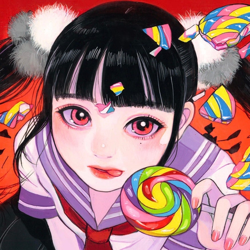 諸行無常の中で最強の女の子を描く魔法使い。私は制作活動を通して、「かわいい」の追求と「諸行無常」の哲学を調和させ、現代美術の新しい地平を切り開いていきたいと思っています。私の描く「最強の女の子」たちは、儚さと強さ、かわいらしさと深遠さを兼ね備えています。あなたの心に、彼女たちの”その刹那”が深く刻まれていくことを願いながら制作しています。