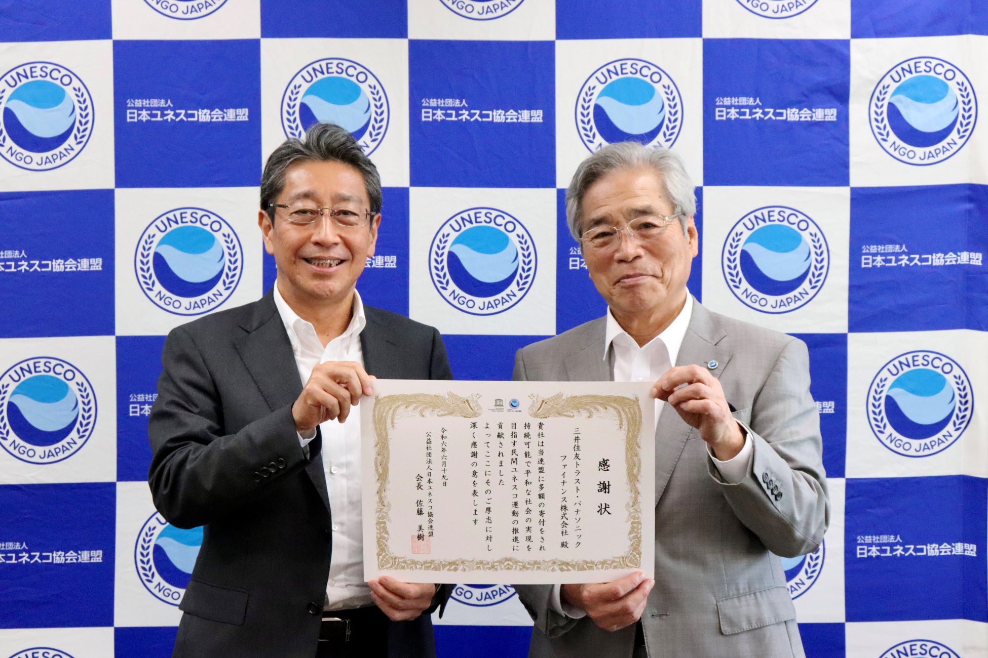 また、寄付の実行に伴い、日本ユネスコ協会連盟より、本プロジェクトにかかる一連の取組を評価いただき、感謝状を拝受いたしました。