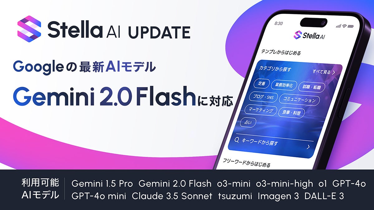 株式会社SUPERNOVAが提供する「Stella AI」に、Googleの最新モデル「Gemini 2.0 Flash」が搭載