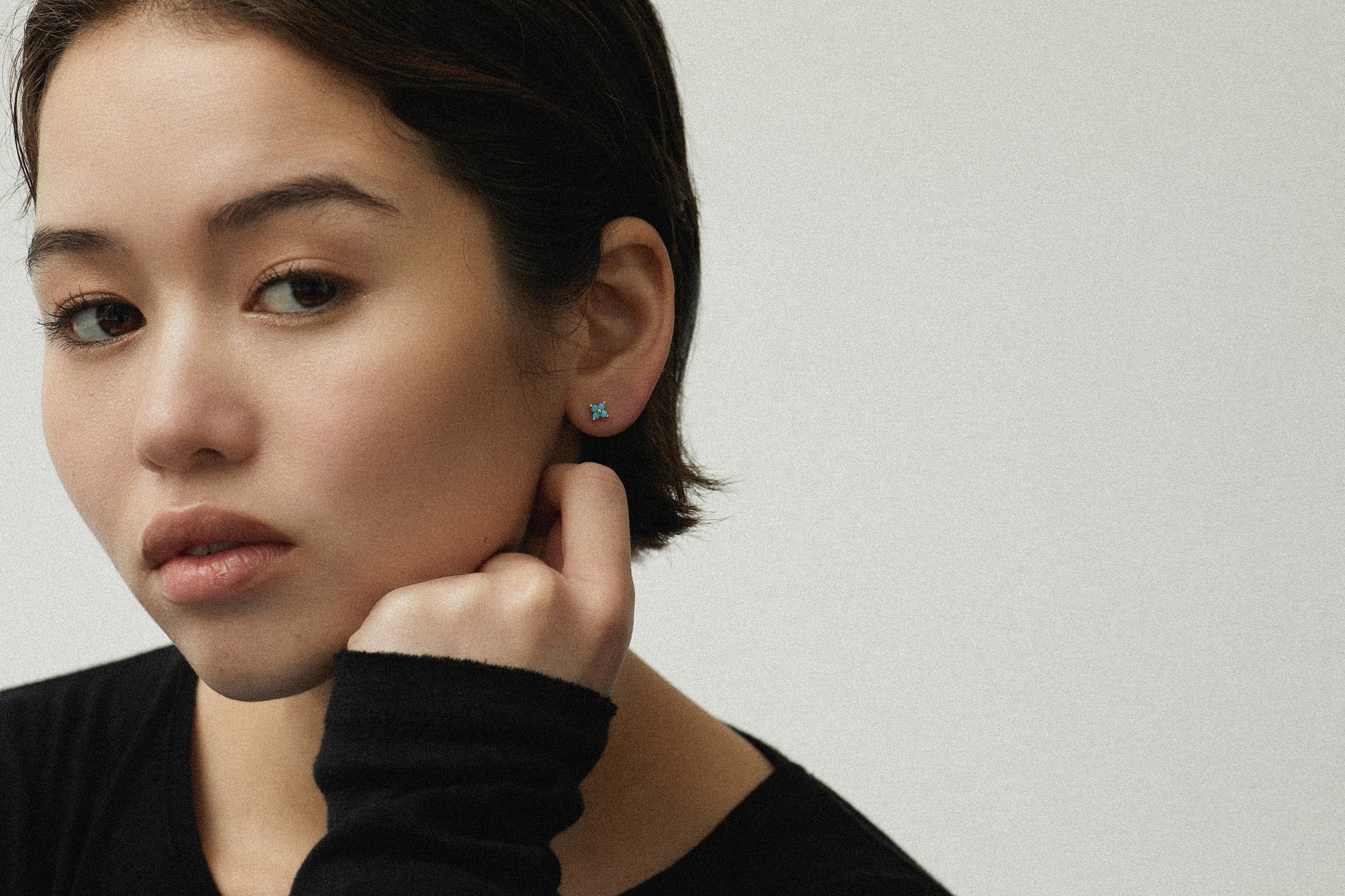 今シーズンのBlack Collectionでは、ミニマルなシルエットの中に、自然由来のエネルギーと、移ろいゆく美しさを封じ込めました。黒のキャンバスに鮮やかなコントラストを描くターコイズ(ナノストーン)、そして、時を重ねるごとに愛着が増すシルバー素材特有の経年変化。