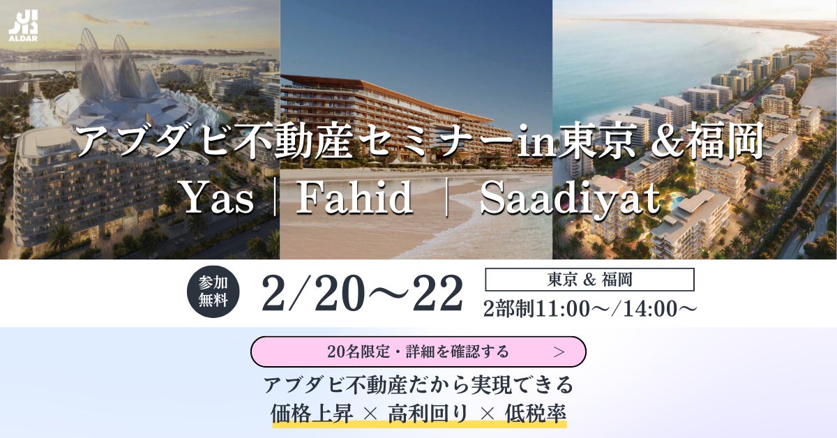 アブダビを拠点とする BITEX REAL ESTATE BROKERAGE L.L.C(本社:アブダビ、代表取締役社長:上野 真司)は、2026年2月22日(日)に、アブダビ不動産セミナーを福岡で初開催することをお知らせします。本セミナーのために、アブダビ最大手不動産デベロッパーである Aldar Properties の担当役員が来日します。