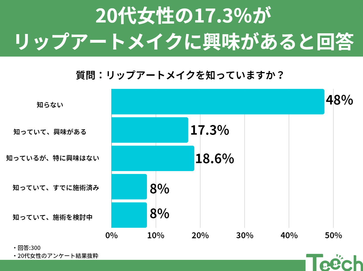「リップアートメイクを知っていますか?」この質問に対して、20代から40代の女性300人が回答しました。