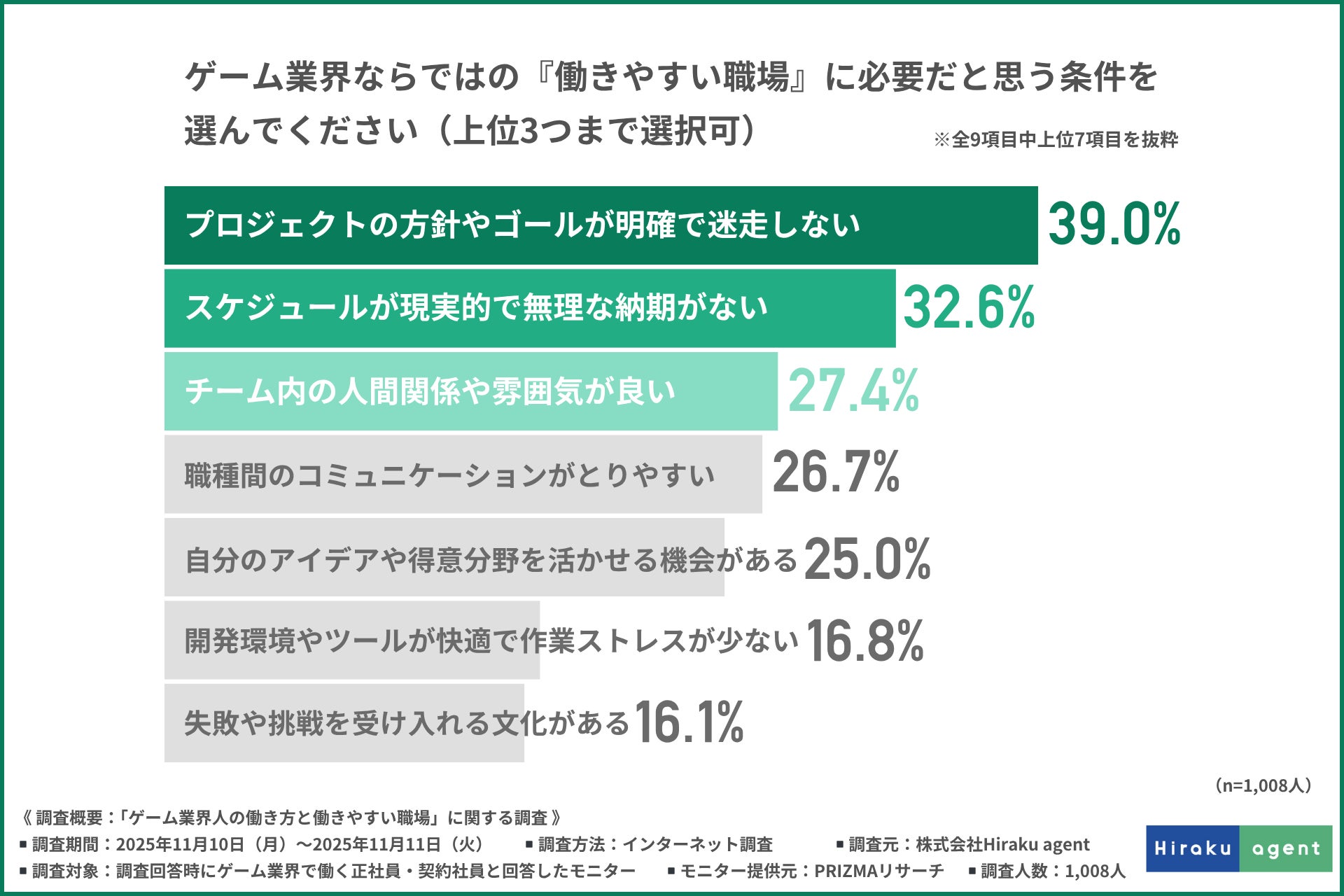 では、ゲーム業界で働く人々は、どのような環境を「働きやすい」と感じているのでしょうか。