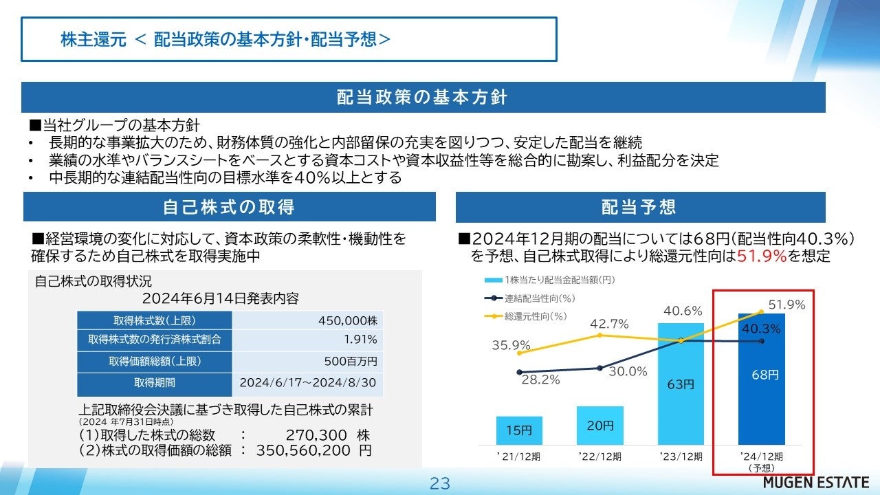 また、自己株式の取得により、総還元性向は現時点で50%超となっております。