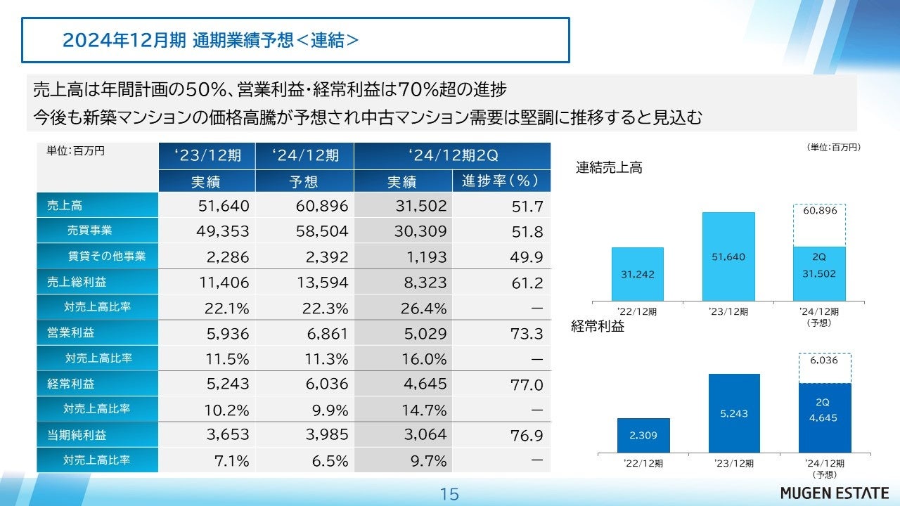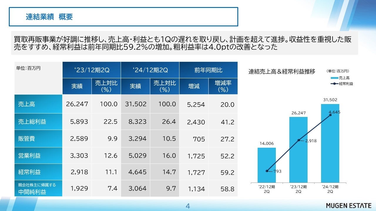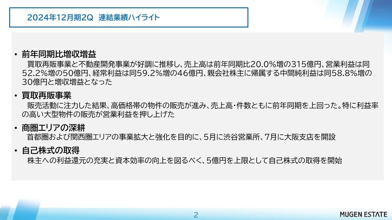 株式会社ムゲンエステート(本社:東京都千代田区、代表取締役:藤田進一)は、2024年12月期第2四半期決算を発表いたしました。
