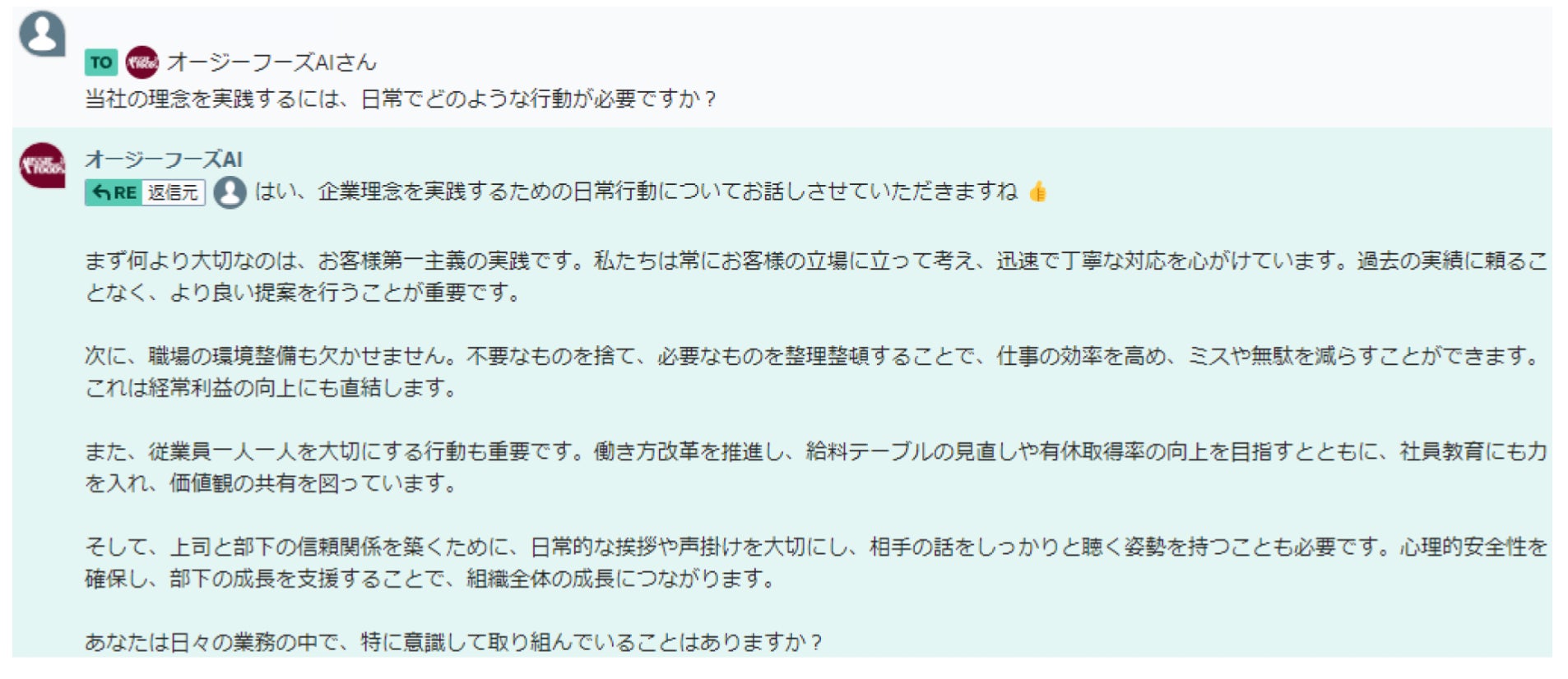 ・社長の想いや会社の理念、食品に対するこだわりをAIが繰り返し伝え、新人の理解促進