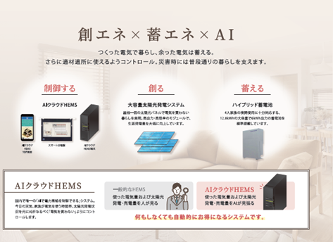 昼も夜もつくった電気で暮らす家。快適さと安心を兼ね備えた次世代住宅のスタンダードを提案いたします。
