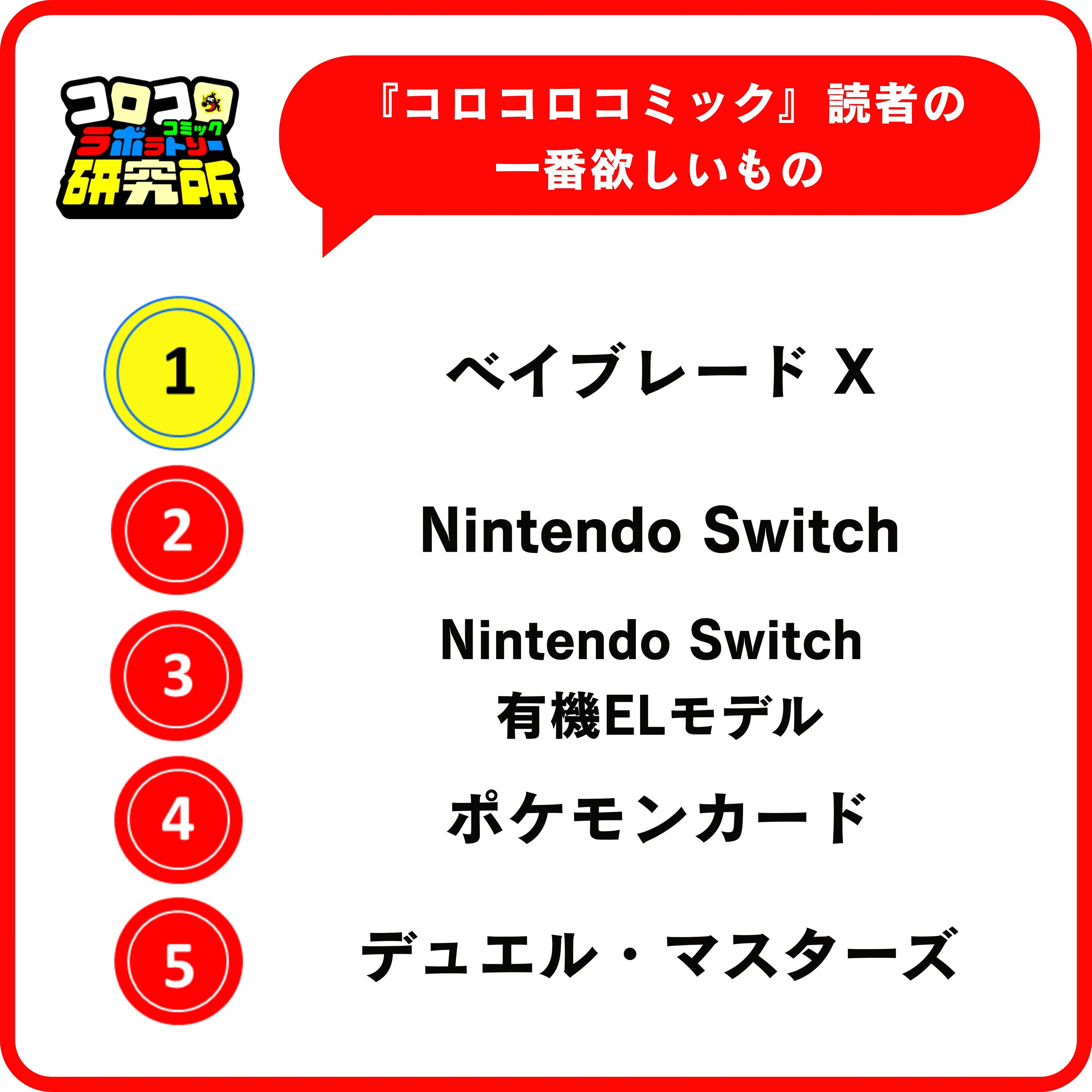 一方、男子は1位の対戦ホビー「ベイブレード X」のほか、4位「ポケモンカード」、5位「デュエル・マスターズ」と、人気のトレーディングカードゲームが上位に。集めるだけではなく、戦って遊べるものが人気が高いという結果になりました。