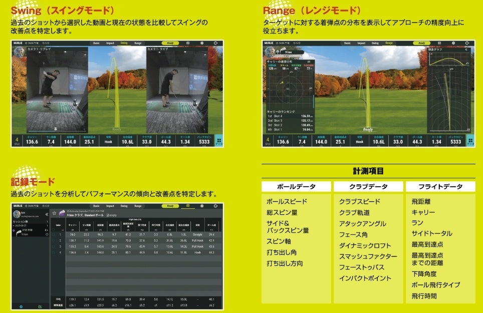 ・ボール初速、打ち出し角、スピン量、クラブ挙動をリアルタイム解析
