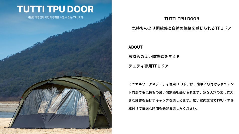 韓国発のアウトドアギアブランド<MINIMAL WORKS(ミニマルワークス)>(日本代理店:UNBY株式会社 兵庫県三田市 代表:冨士松 大智)が新作大型テント「TUTTI」を発売。