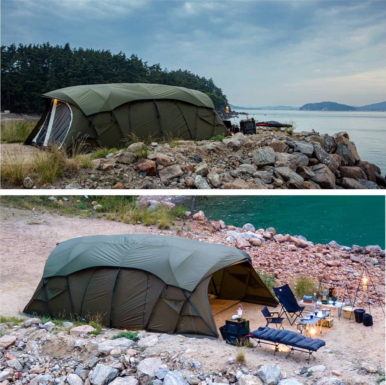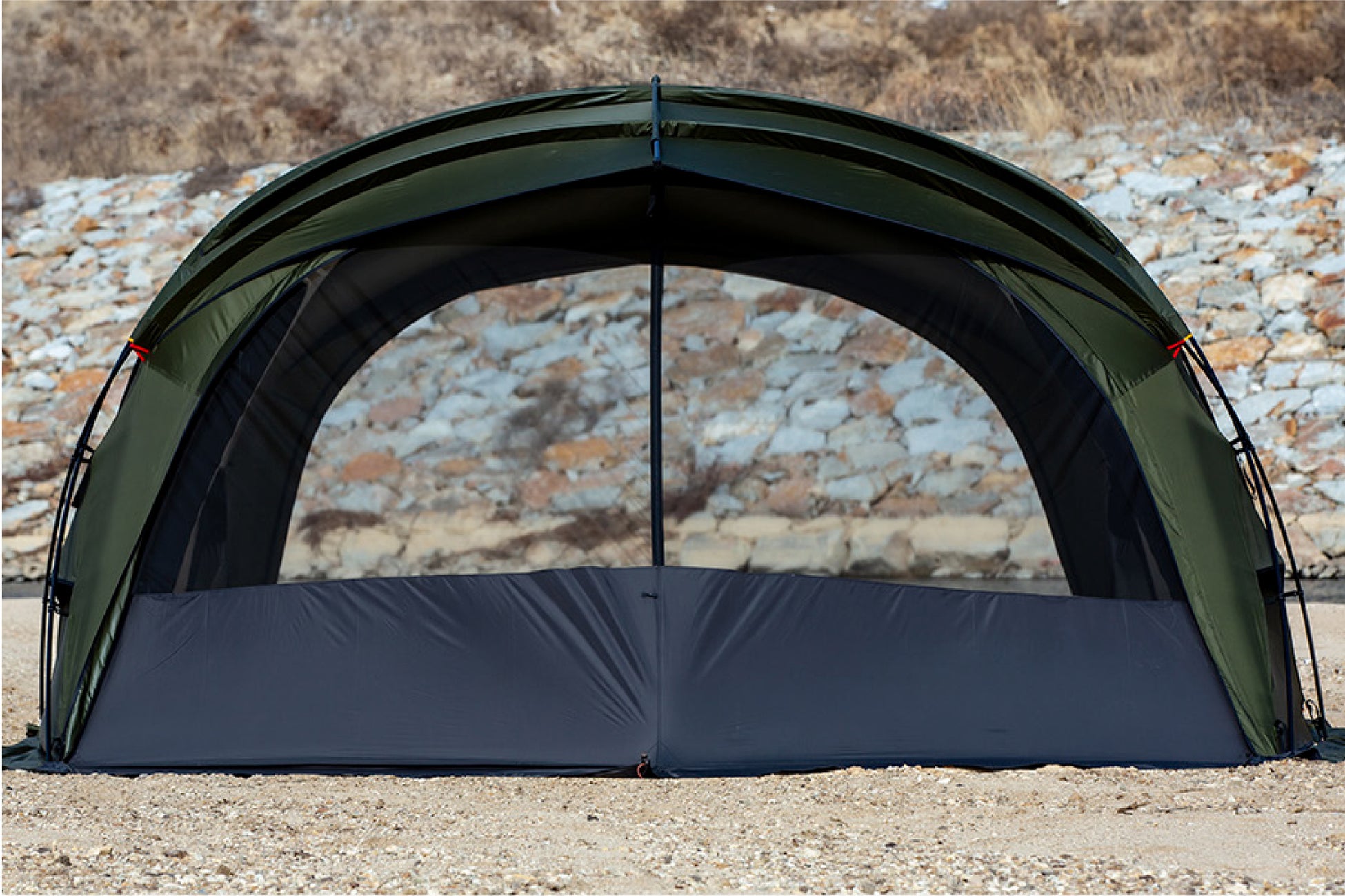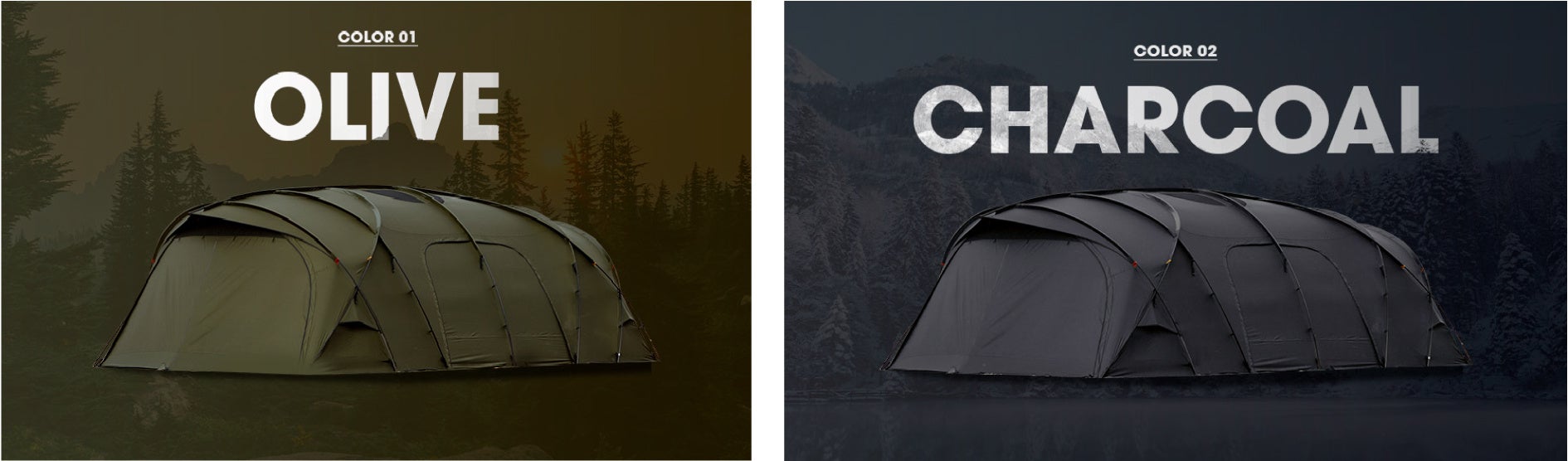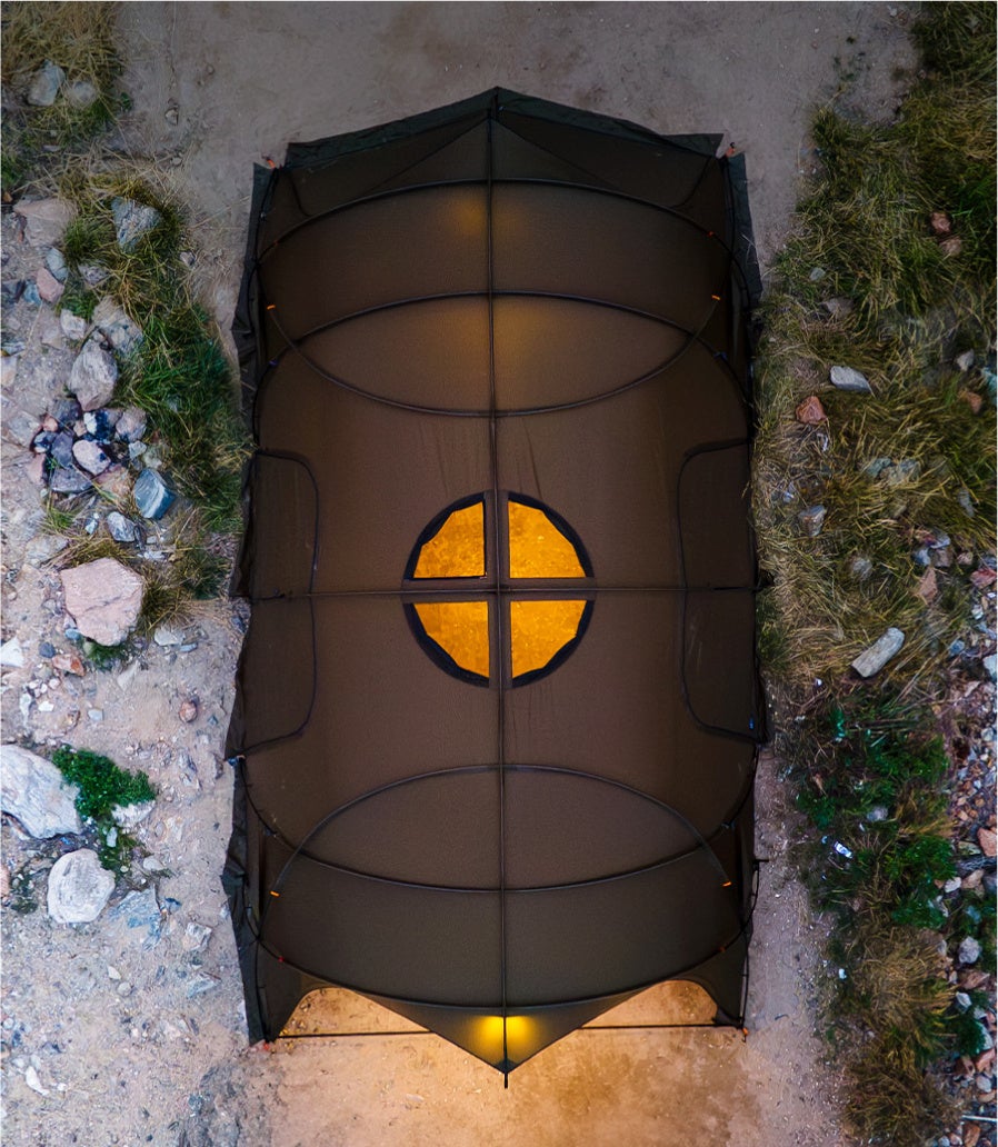 GUAVA4Pインナーテントのポールから着想を得た両サイドのダブルクロスポールとVHOUSEのリッジボールを基盤に設計された大型シェルターです。頑丈なポール構造で設計され安定的な設置ができるため、8-10人を収容できるベースシェルターとしての使用がおすすめです。