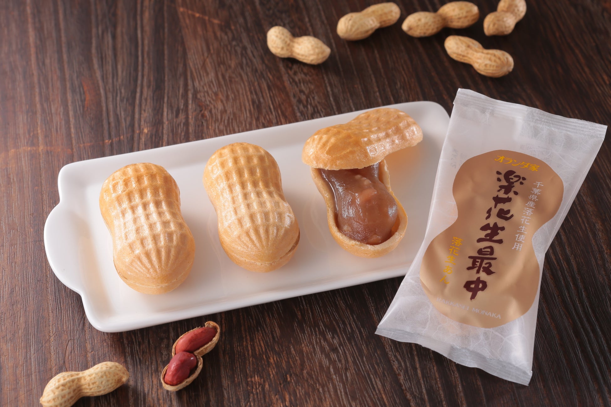落花生をかたどったお米の風味豊かな最中皮と、千葉県産落花生(千葉半立・ナカテユタカ)の蜜煮入り特製餡の調和をお楽しみいただけます。