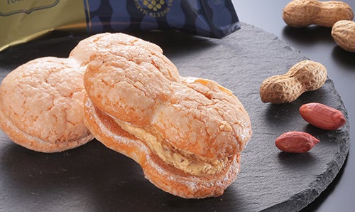 風味豊かな千葉県産落花生のおいしさを活かしたバタークリームを、ふわもちの食感のダックワーズ生地でサンドした老若男女に人気の商品です。
