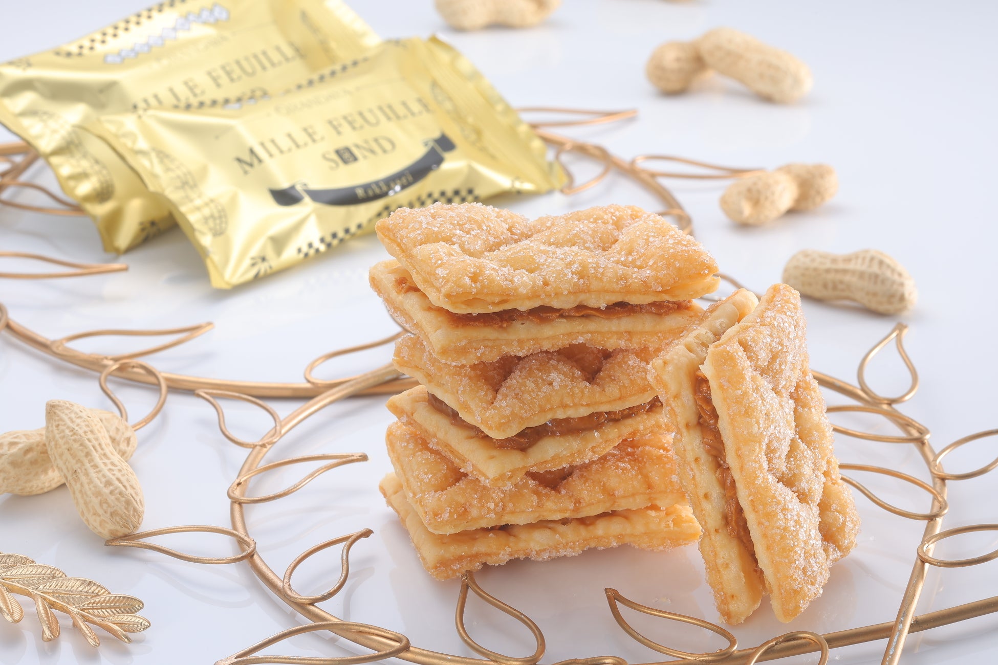 オランダ家の大人気楽花生シリーズは、「楽花生パイ」・「楽花生最中」・「楽花生ダックワーズ」・「楽花生ミルフィーユサンド」に次いで5品目となります。