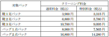 内容:通常料金の15%OFFとなる特別料金でクリーニングが可能