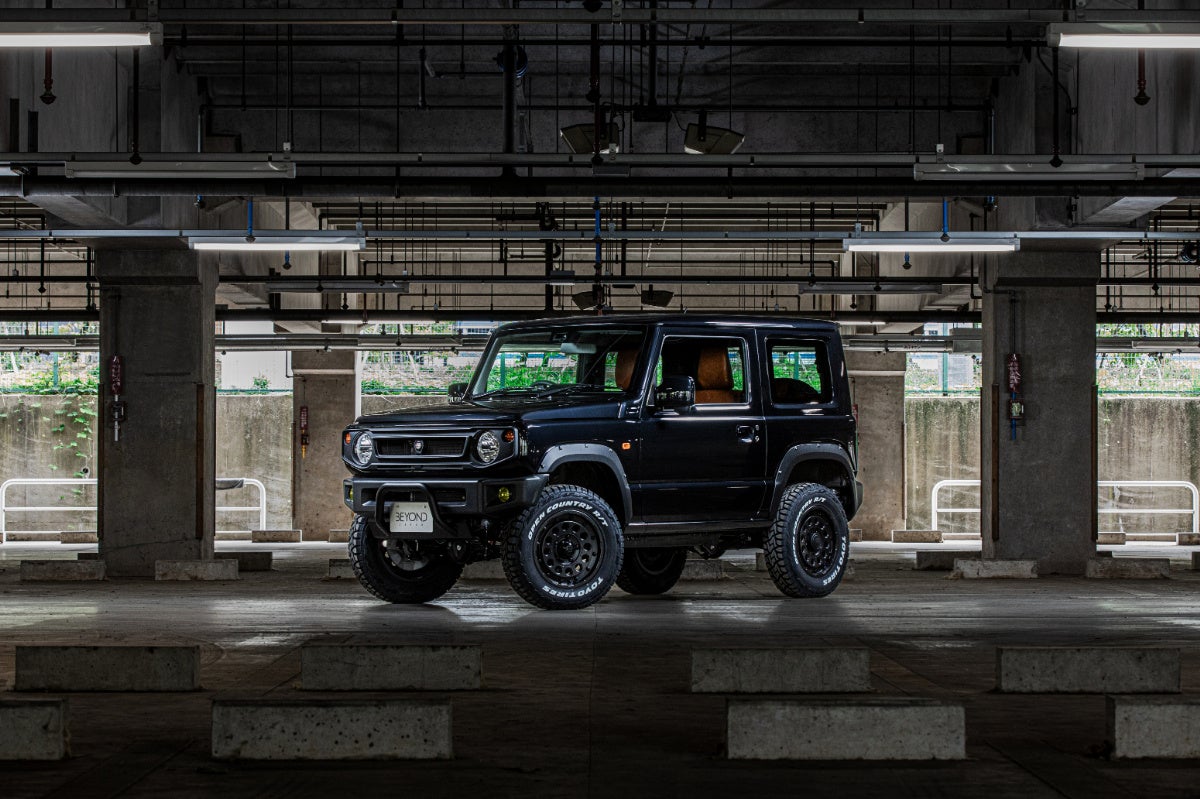 BeyondJAPANのデモカー『CODE04』—旧車をモチーフにしたグリルとオーバーフェンダーでジムニーの存在感をさらに引き立てる