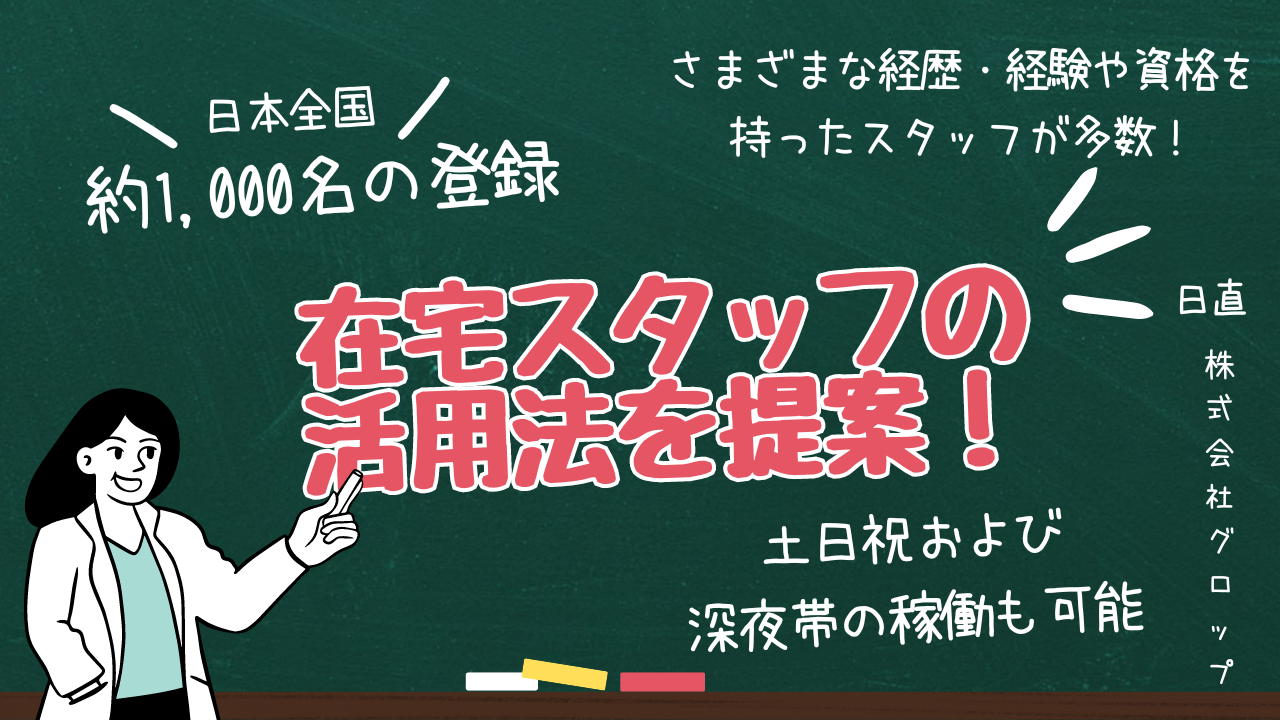 ・首都圏・関西圏・岡山県を中心として、日本全国に在宅スタッフが約 1,000 名(業務委託契約)