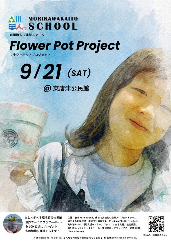 2024年9月21日、唐津南高等学校 虹の松原プロジェクトチームと唐津Farm&Food(Precious Plastic Karatsu)が共催する「森川海人っ体験スクール フラワーポットプロジェクト」が、東唐津公民館にて開催されました。本プロジェクトは、廃プラスチックを活用したアップサイクルフラワーポットと、環境教育を通じて地域住民の環境意識を高めることを目的に行われました。