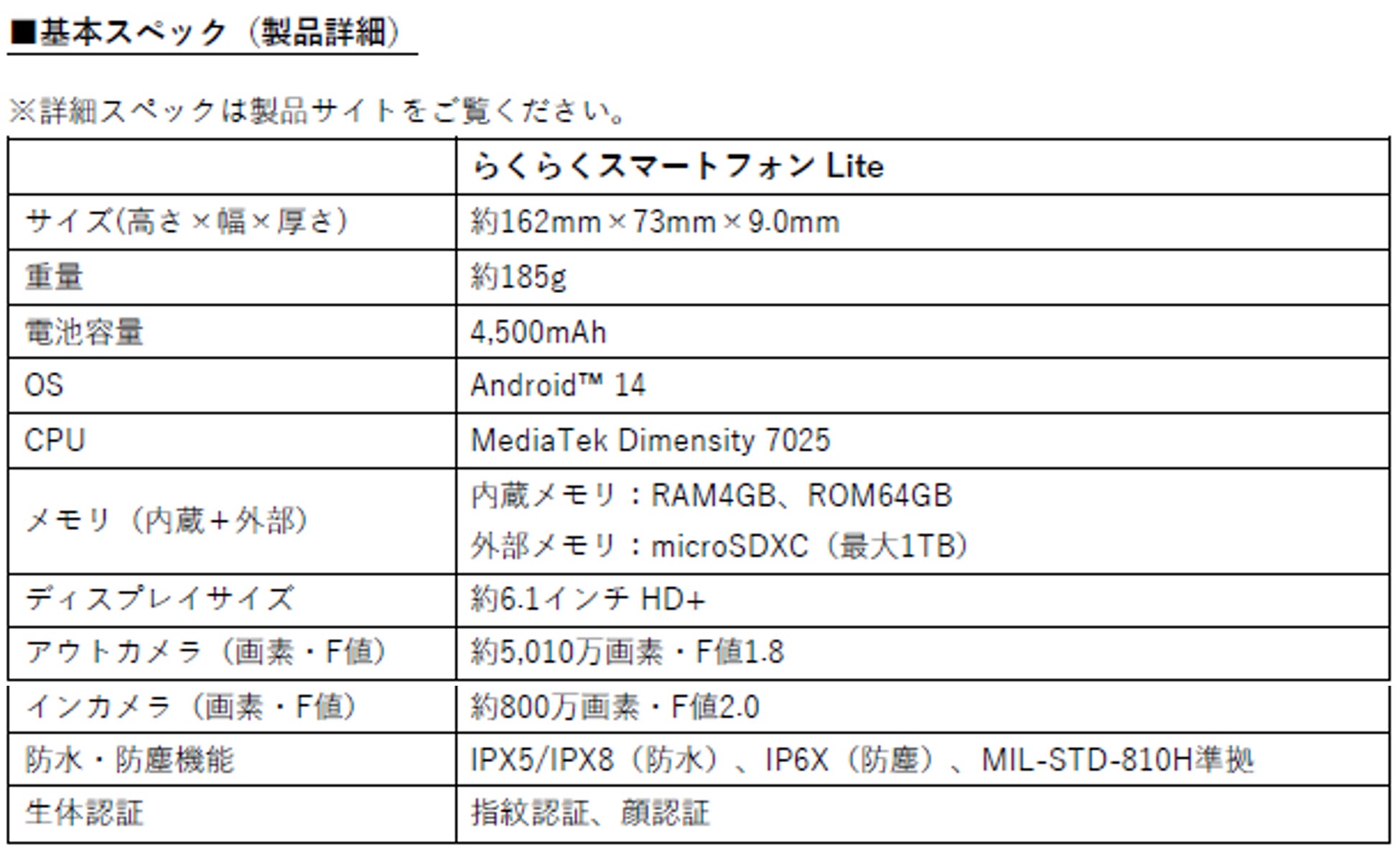 今回発売する「らくらくスマートフォン Lite」は、シリーズのDNAを受け継ぎながら、「大画面で専用UIによってかんたんに操作ができる」「あんしんで使いたくなる」「手軽に日々楽しく健康管理ができる」スマートフォンとなっています。