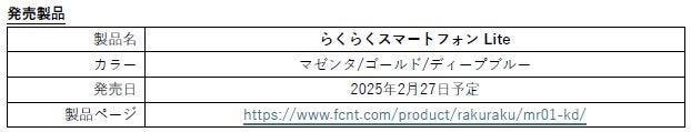 FCNT合同会社(本社:神奈川県大和市、代表取締役社長 田中典尚、以下FCNT)は、「らくらくスマートフォン Lite(ラクラクスマートフォン ライト)」を2月27日(木)よりKDDI株式会社、沖縄セルラー電話株式会社のUQ mobile取扱店で発売いたします。