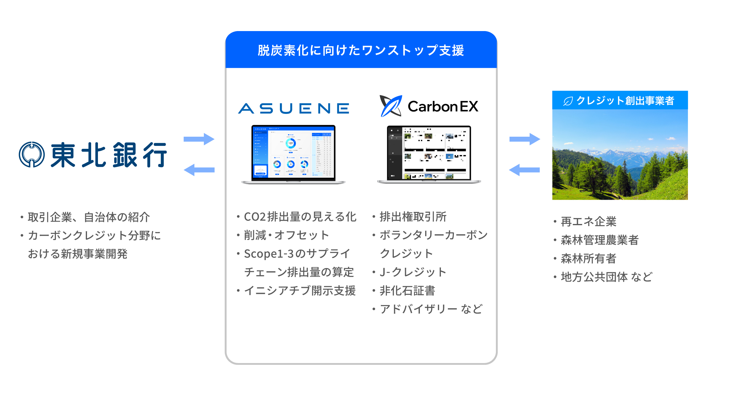 ・東北銀行の顧客でカーボンクレジットや非化石証書に活用を希望する企業を「Carbon EX」に紹介