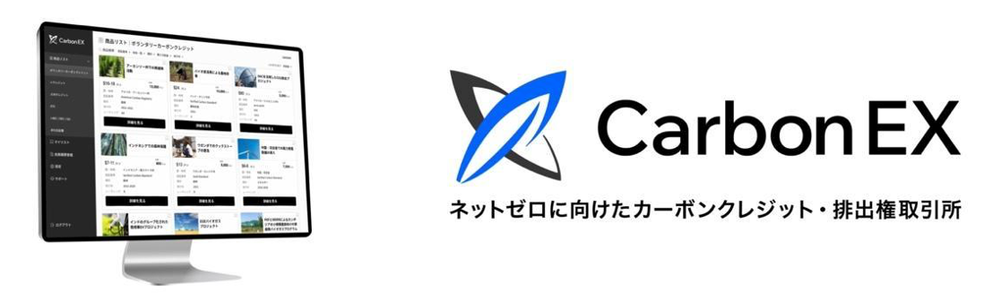当社は、「ネットゼロに向けた新たな産業を創出する」企業として、世界の幅広いクレジットを取り扱うカーボンクレジット・排出権取引所「Carbon EX」を運営しています。「Carbon EX」は、信頼性の高い、国内外のさまざまなカーボンクレジットを24時間、365日閲覧・購入可能で、クレジット創出や購買支援も一気通貫してサポートします。現在、バイヤー企業とセラー企業の登録社実績数が1,300社を超え、国内外のカーボンクレジットの供給可能な取り扱い数量が約500万トンに及ぶなど、カーボンクレジットの取引プラットフォームの提供を通じて、グローバルに企業の脱炭素経営を推進しています。